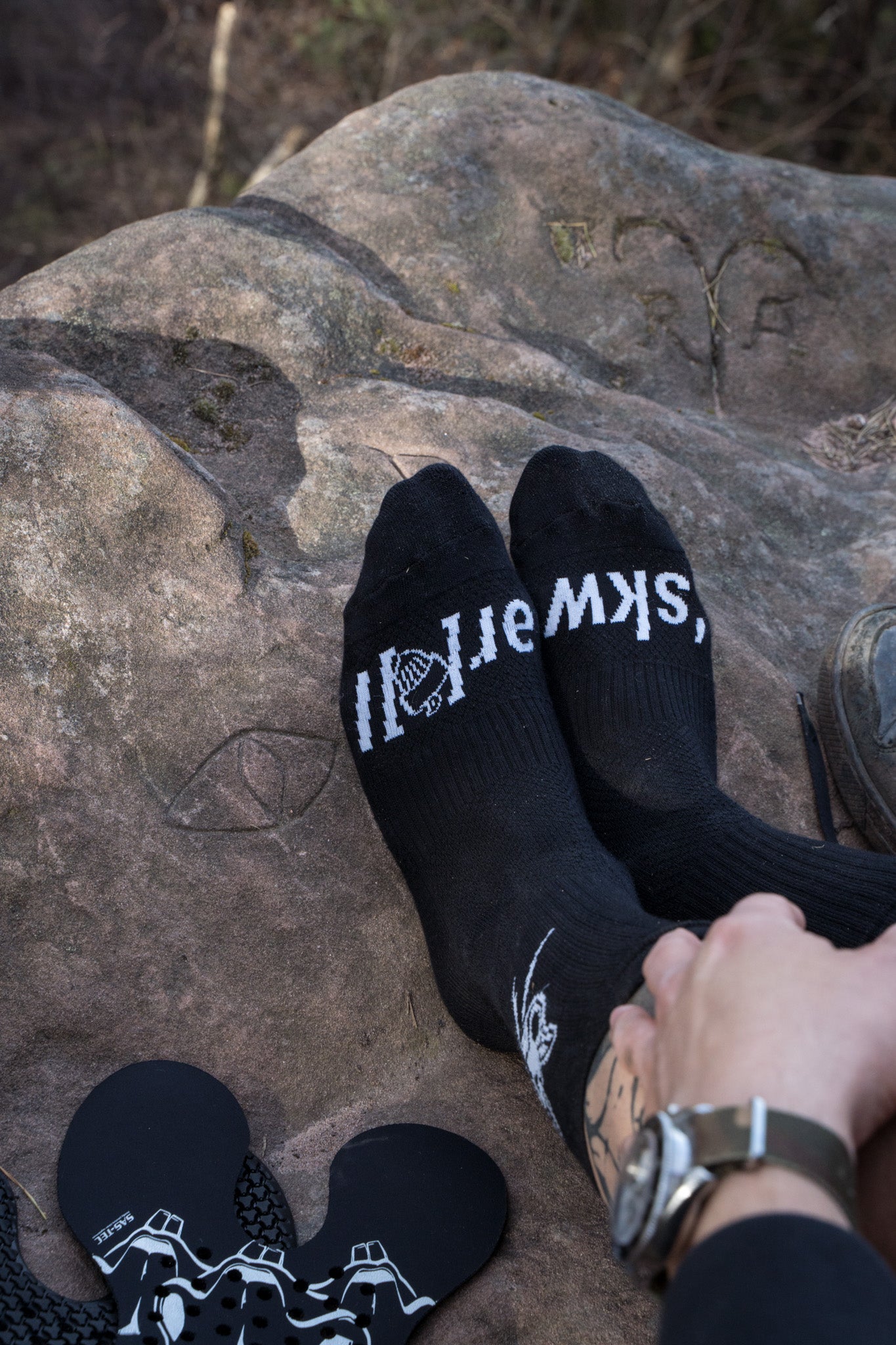 The woven Skwerel logo on the toes makes it particularly easy to put the right sock on the right foot.